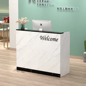 Escritorio de recepción de oficina moderno personalizable, restaurante, bar, escritorio de cajero, muebles de madera de nuevo diseño